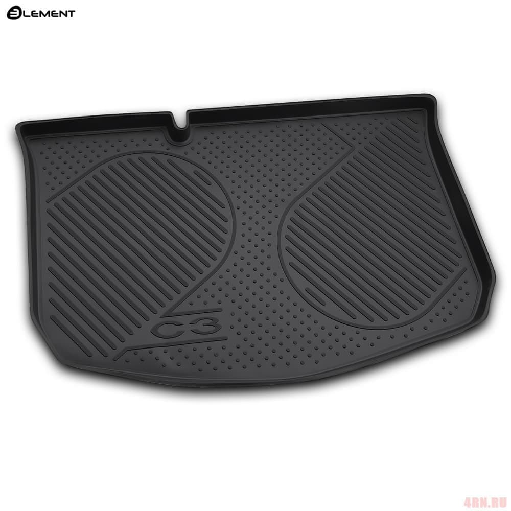 Коврик для багажника Element с бортиком черного цвета, артикул C000000016.01 изготовлен с учетом всех особенностей багажного отделения автомобиля Citroen C3 2003-2009.