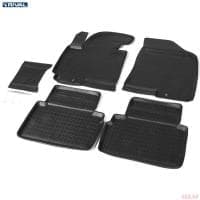 Коврики салона с бортиками, артикул 12805001 от российского бренда Риваль, изготовлены индивидуально для автомобиля Kia Sportage 2010-2015. Черный цвет идеально впишется в темный салон автомобиля