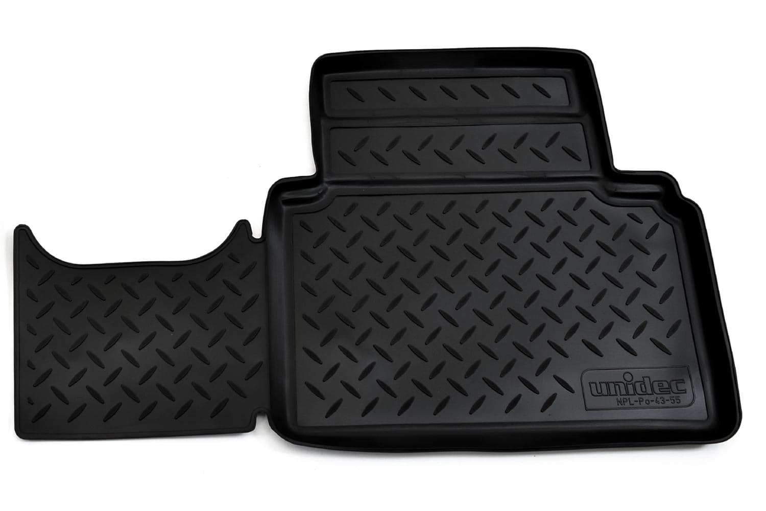 Разрабатываются точно под контуры конкретного автомобиля, что обеспечивает 100% идеальную применяемость. Они идеально прилегают к полу автомобиля в отведенном им месте.