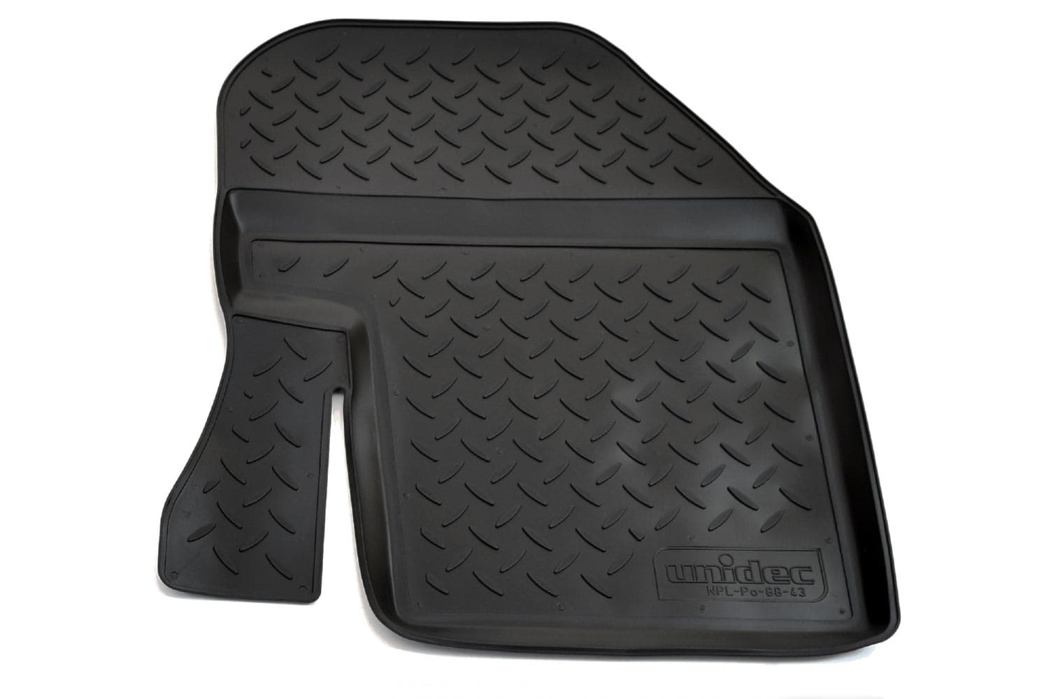 Имеют не скользящую поверхность и обеспечивают безопасное управление автомобилем, а также контролем ситуации на дороге. Изготавливаются из полиуретана, который по всем своим характеристикам превосходит резину. Во-первых, он обладает гораздо большим диапазоном твердости. Во-вторых, меньше подвержен стиранию и эластичен. В-третьих, он менее подвержен разрыву и деформациям. Коврик стоек к маслу, бензину и кислотам.