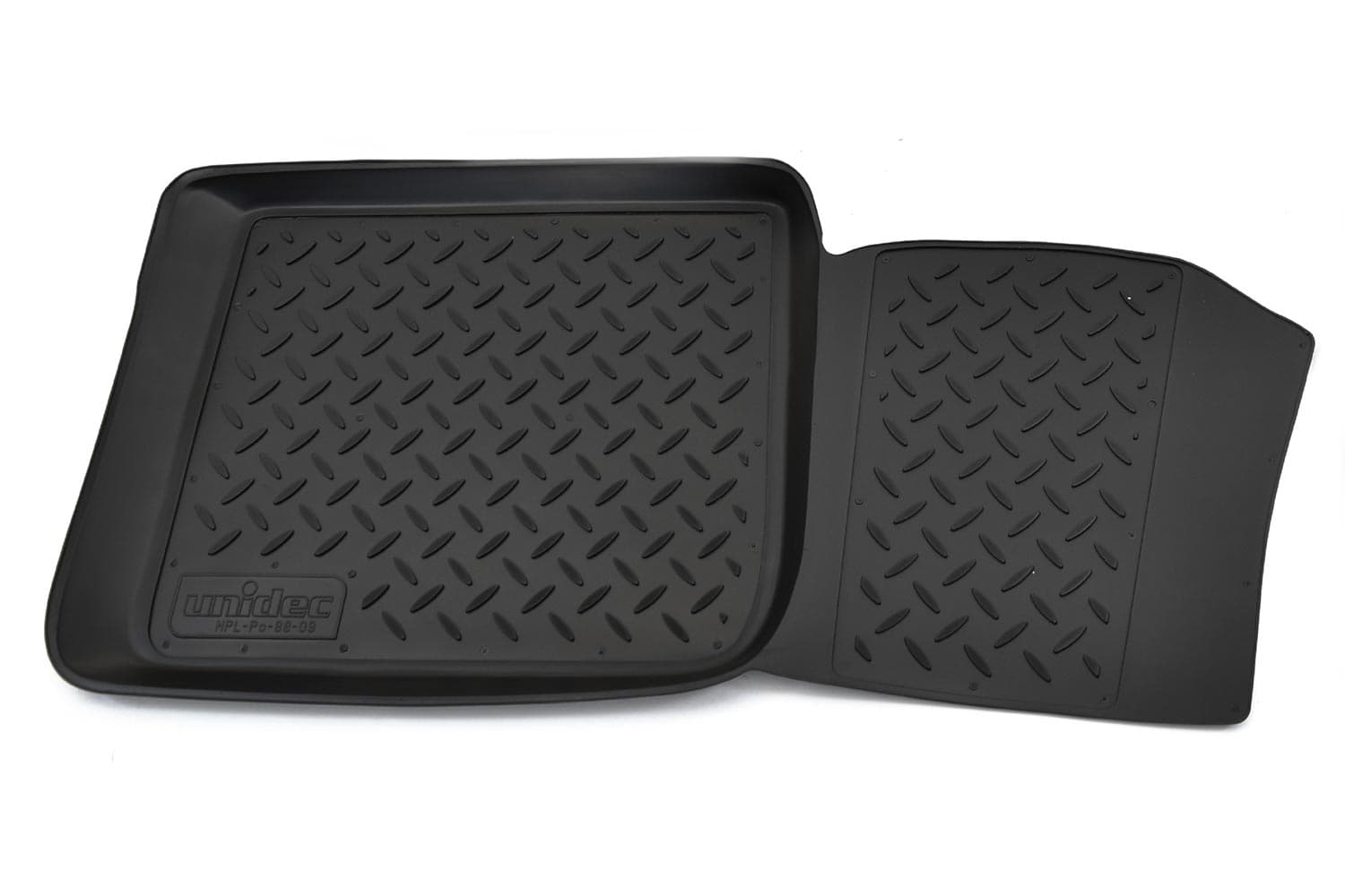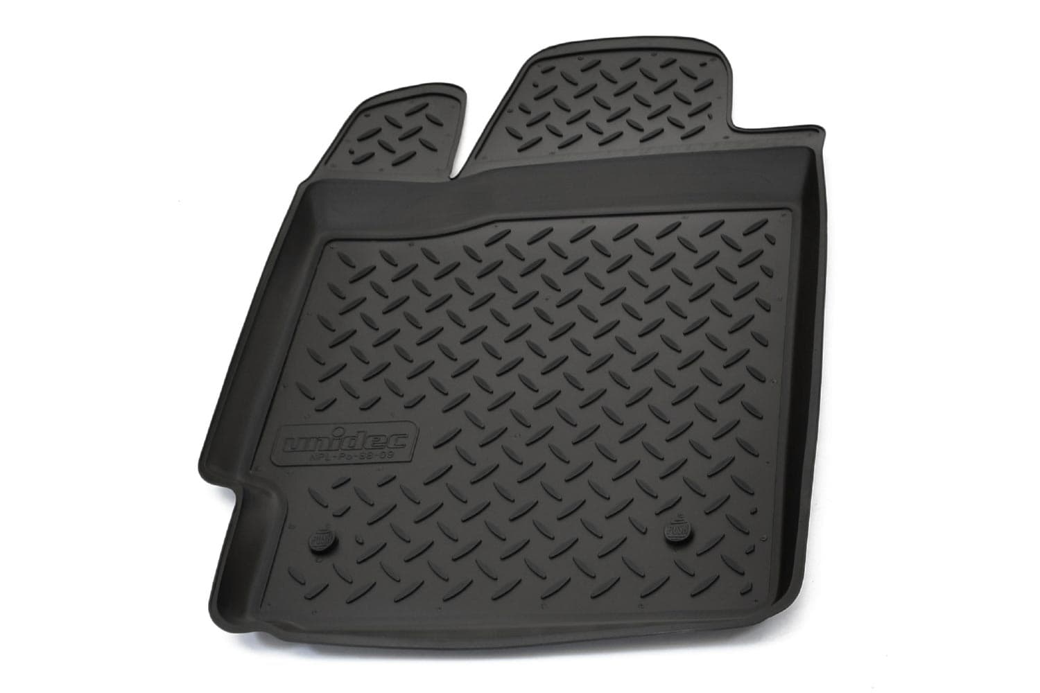 Имеют не скользящую поверхность и обеспечивают безопасное управление автомобилем, а также контролем ситуации на дороге. Изготавливаются из полиуретана, который по всем своим характеристикам превосходит резину. Во-первых, он обладает гораздо большим диапазоном твердости. Во-вторых, меньше подвержен стиранию и эластичен. В-третьих, он менее подвержен разрыву и деформациям. Коврик стоек к маслу, бензину и кислотам.