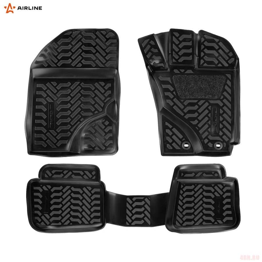 Ковры имеют современный рисунок имитирующий протектор шин. У большинства моделей водительский коврик имеет ворсовый подпятник для предотвращения соскальзывания ноги, а так же оснащены крепежом для крепления их в штатных местах.