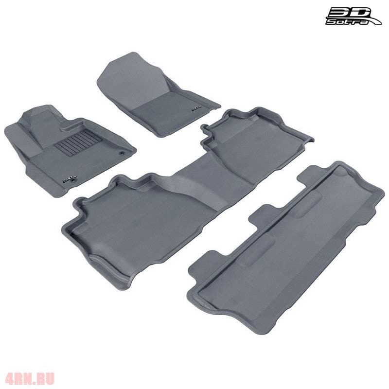 Премиальные коврики Sotra 3D ST74-00535 серого цвета, для автомобиля Toyota Sequoia с высоким бортиком, изготовлены из износоустойчивого трехслойного текстиля.