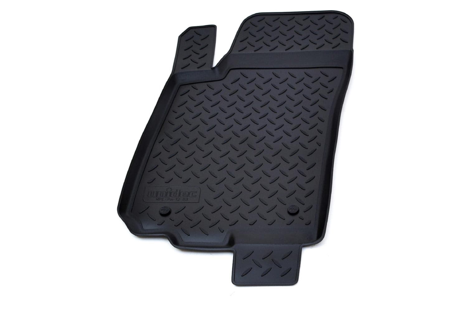 Имеют не скользящую поверхность и обеспечивают безопасное управление автомобилем, а также контролем ситуации на дороге. Изготавливаются из полиуретана, который по всем своим характеристикам превосходит резину. Во-первых, он обладает гораздо большим диапазоном твердости. Во-вторых, меньше подвержен стиранию и эластичен. В-третьих, он менее подвержен разрыву и деформациям. Коврик стоек к маслу, бензину и кислотам.