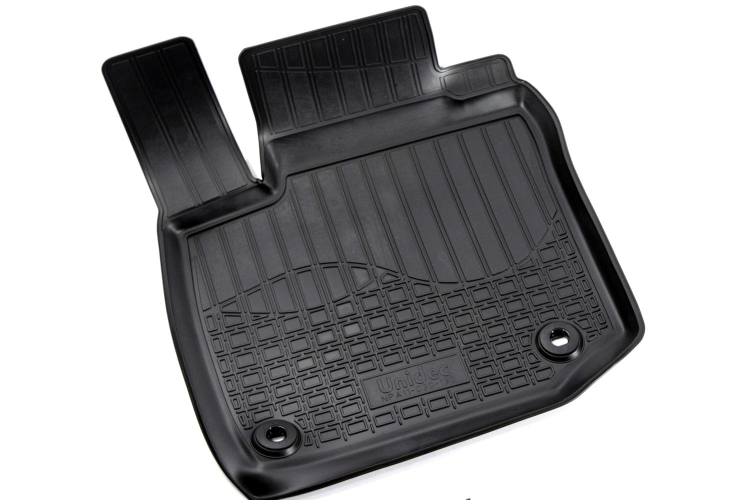 Имеют не скользящую поверхность и обеспечивают безопасное управление автомобилем, а также контролем ситуации на дороге. Изготавливаются из полиуретана, который по всем своим характеристикам превосходит резину. Во-первых, он обладает гораздо большим диапазоном твердости. Во-вторых, меньше подвержен стиранию и эластичен. В-третьих, он менее подвержен разрыву и деформациям. Коврик стоек к маслу, бензину и кислотам.