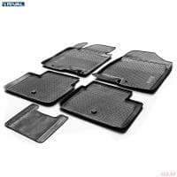 Поверхность оформлена специальным рисунком, который в сочетании с высокими бортиками исключает попадание грязи и жидкости на оригинальное покрытие. Грязь и влага скапливается в углублениях. Комплектация предусматривает наличие перемычки, которая защищает покрытие тоннеля салона над карданным валом.