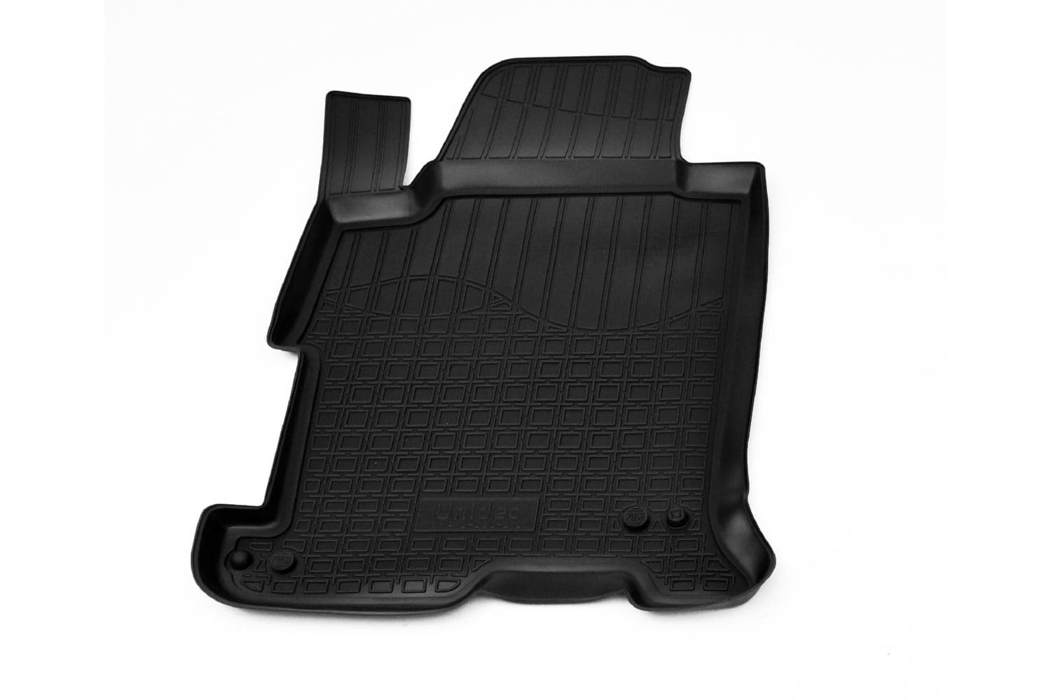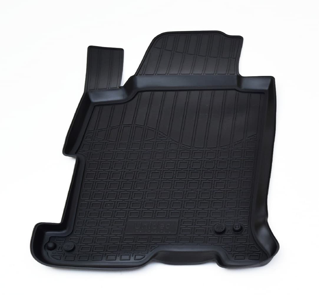 Имеют не скользящую поверхность и обеспечивают безопасное управление автомобилем, а также контролем ситуации на дороге. Изготавливаются из полиуретана, который по всем своим характеристикам превосходит резину. Во-первых, он обладает гораздо большим диапазоном твердости. Во-вторых, меньше подвержен стиранию и эластичен. В-третьих, он менее подвержен разрыву и деформациям. Коврик стоек к маслу, бензину и кислотам.