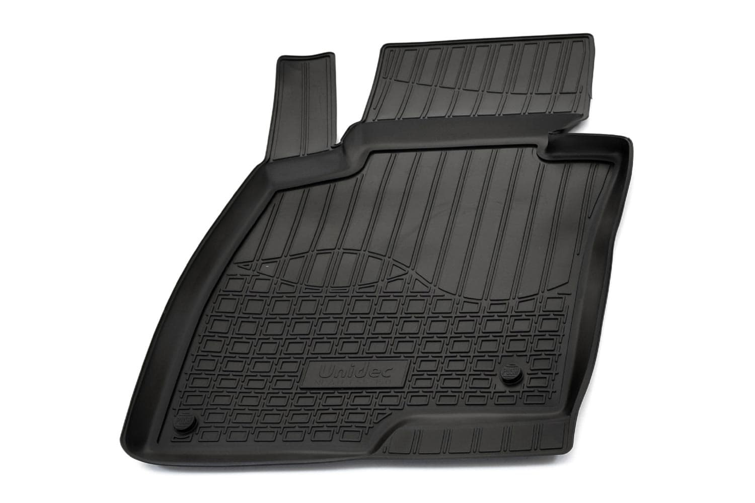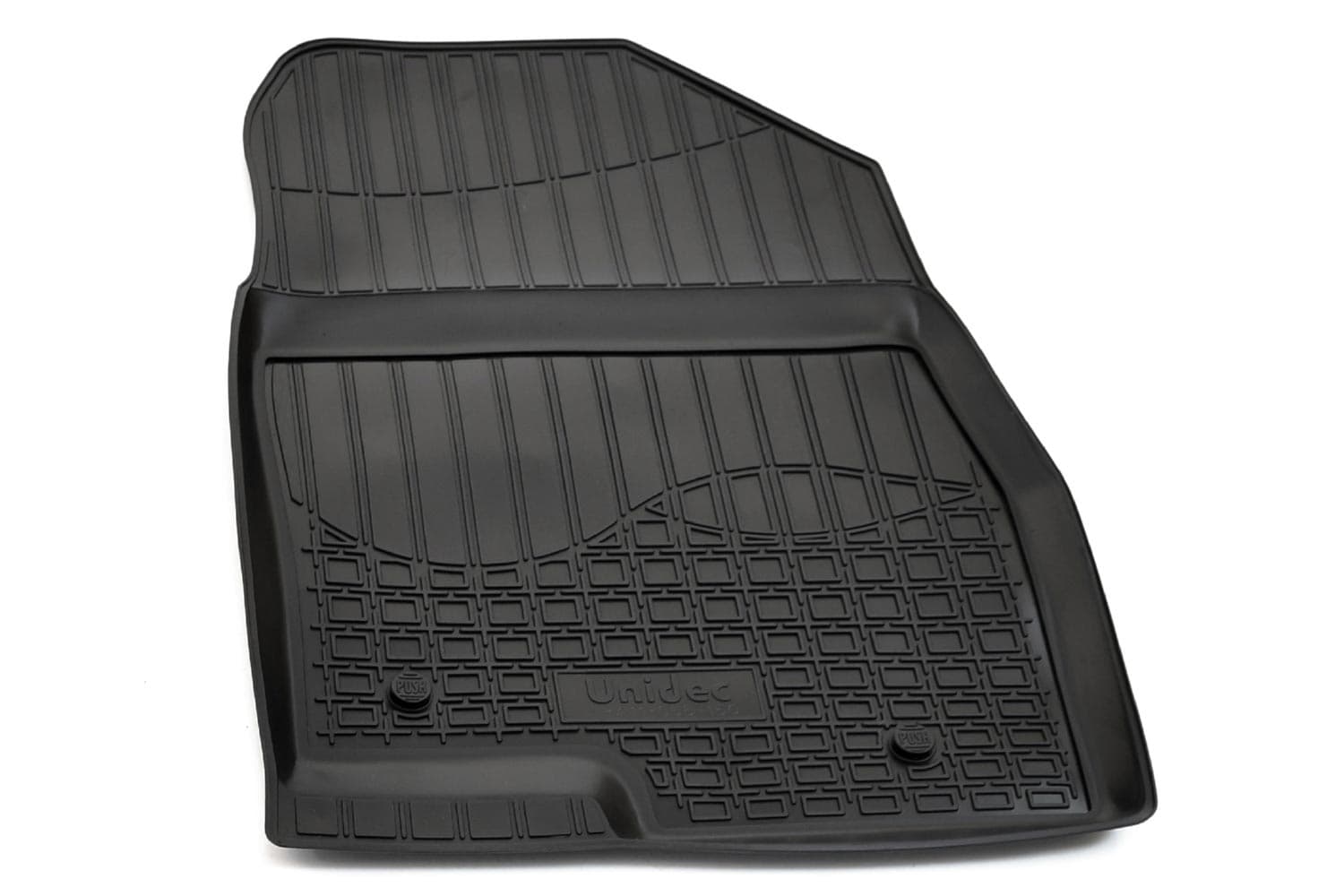 Имеют не скользящую поверхность и обеспечивают безопасное управление автомобилем, а также контролем ситуации на дороге. Изготавливаются из полиуретана, который по всем своим характеристикам превосходит резину. Во-первых, он обладает гораздо большим диапазоном твердости. Во-вторых, меньше подвержен стиранию и эластичен. В-третьих, он менее подвержен разрыву и деформациям. Коврик стоек к маслу, бензину и кислотам.