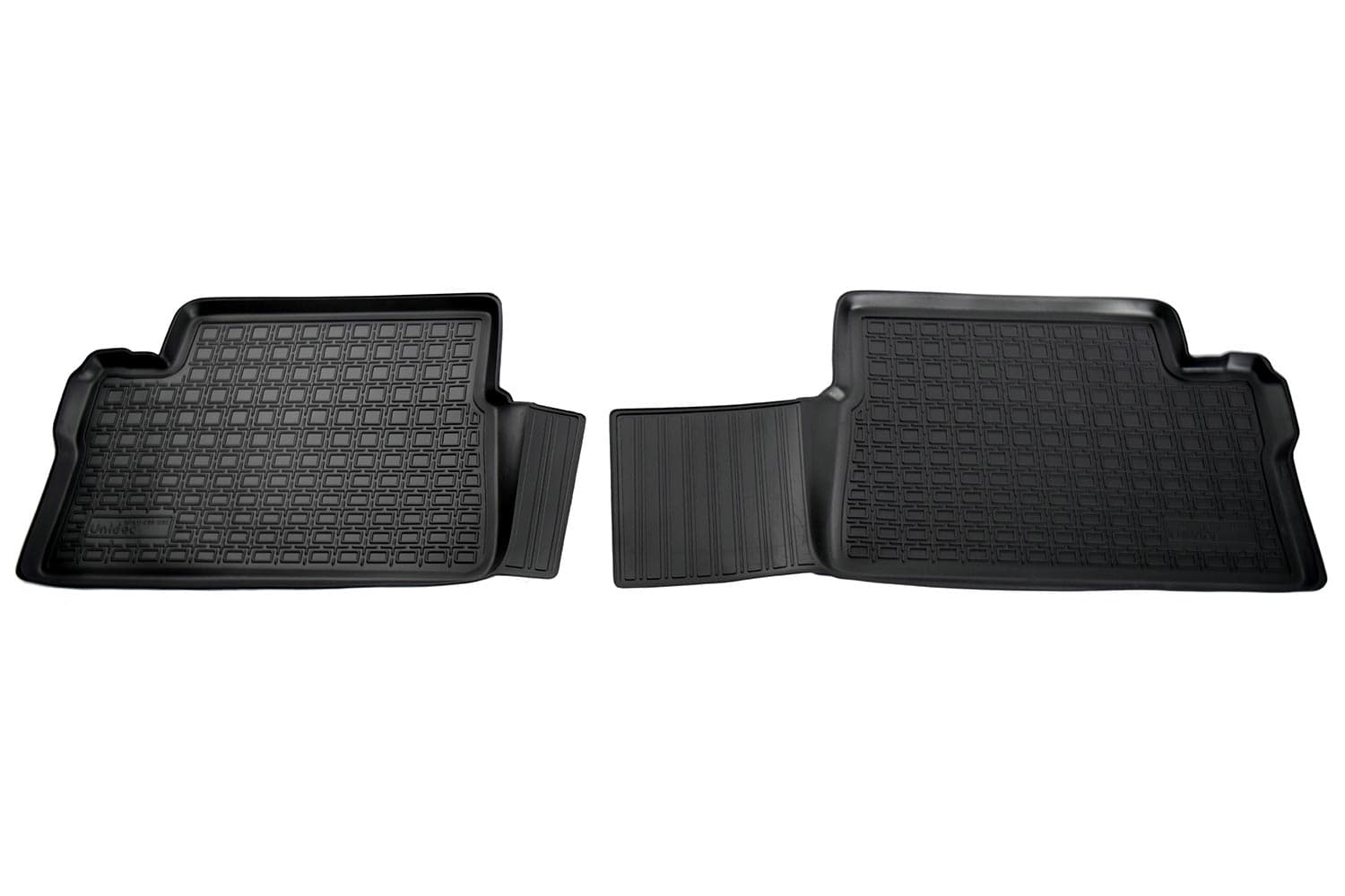 Разрабатываются точно под контуры конкретного автомобиля, что обеспечивает 100% идеальную применяемость. Они идеально прилегают к полу автомобиля в отведенном им месте.