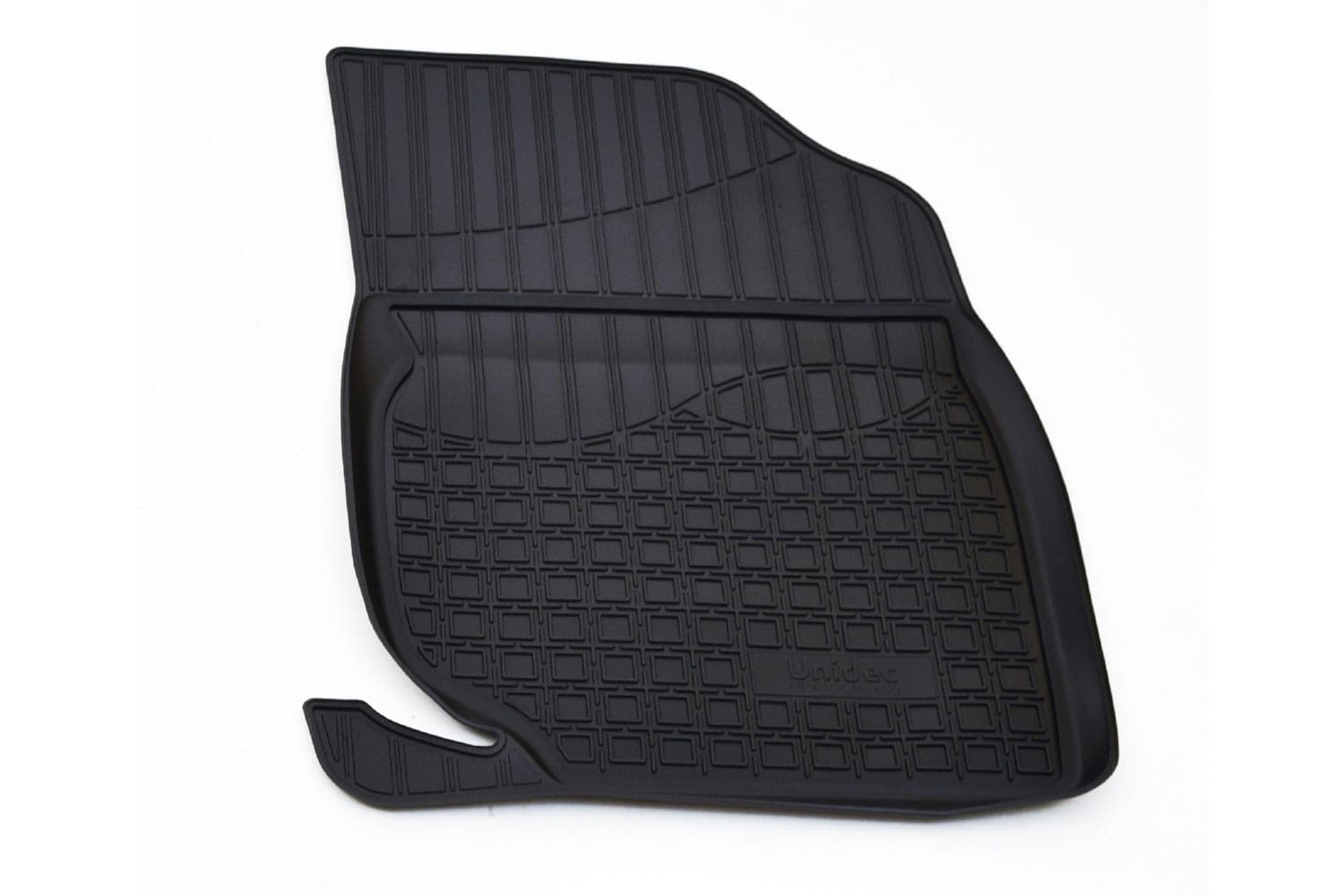 Имеют не скользящую поверхность и обеспечивают безопасное управление автомобилем, а также контролем ситуации на дороге. Изготавливаются из полиуретана, который по всем своим характеристикам превосходит резину. Во-первых, он обладает гораздо большим диапазоном твердости. Во-вторых, меньше подвержен стиранию и эластичен. В-третьих, он менее подвержен разрыву и деформациям. Коврик стоек к маслу, бензину и кислотам.