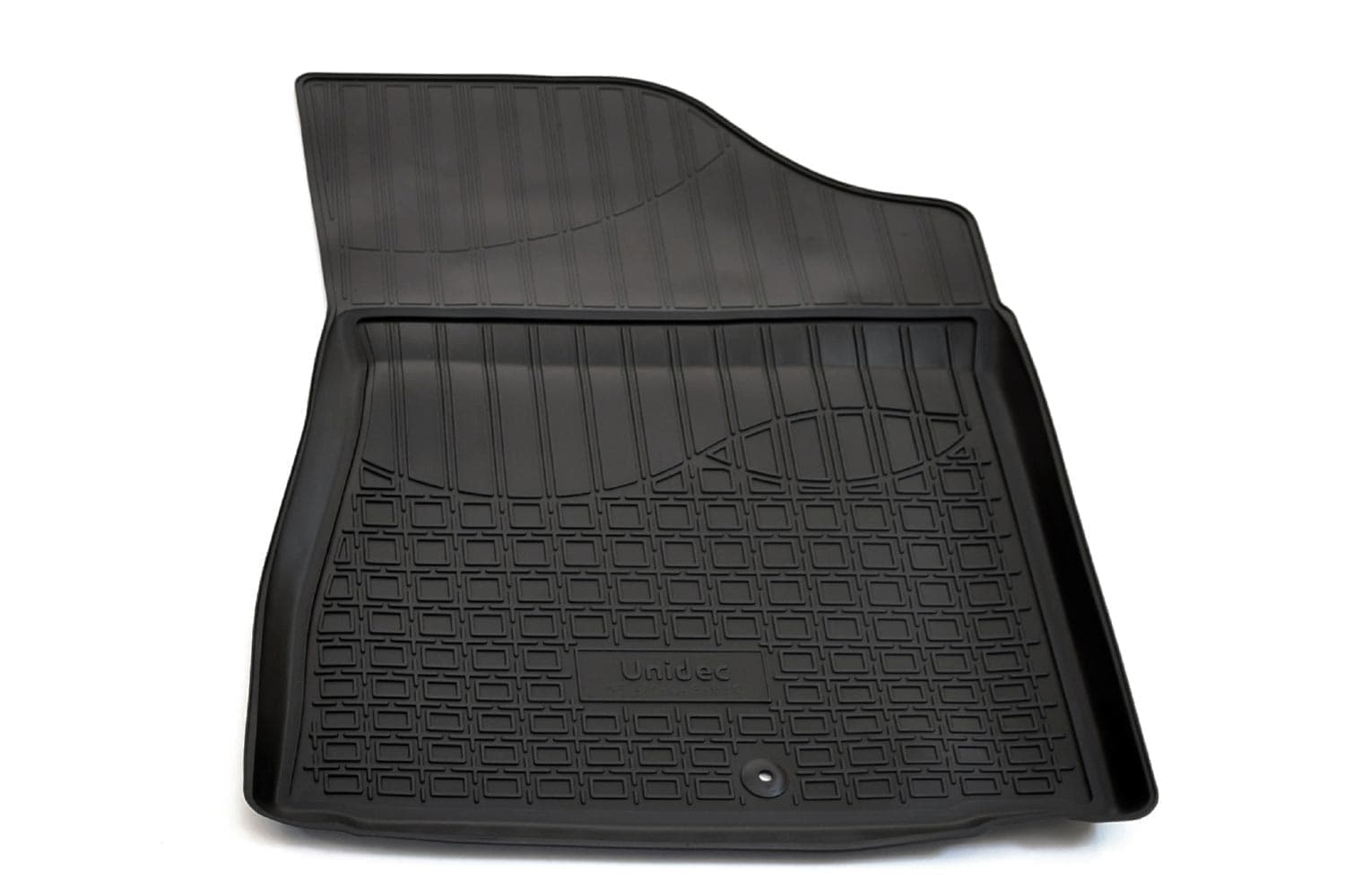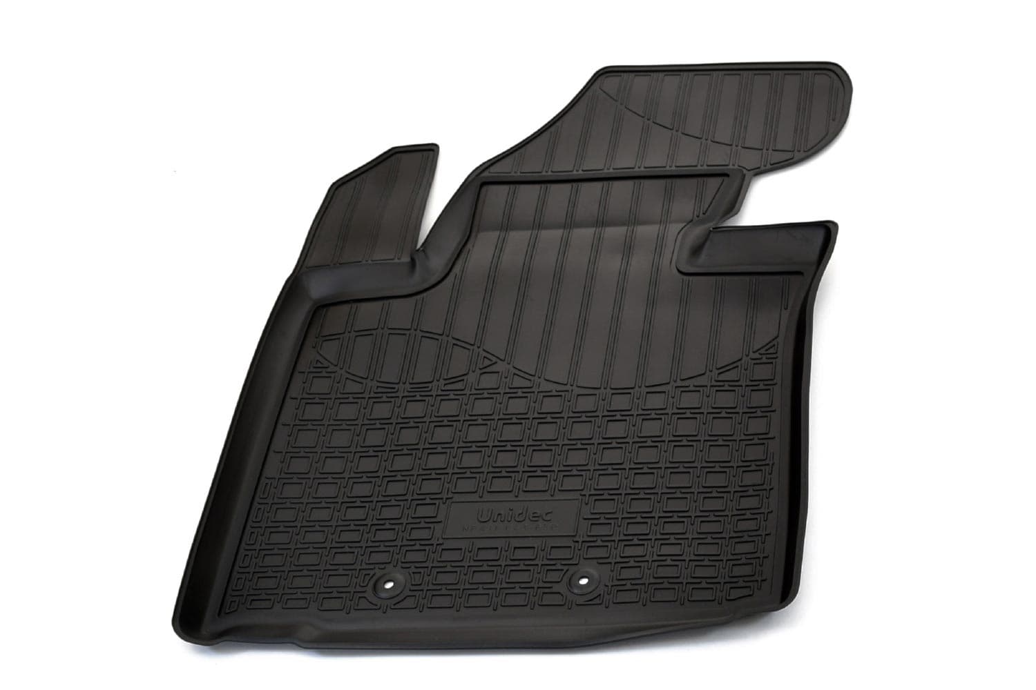 Имеют не скользящую поверхность и обеспечивают безопасное управление автомобилем, а также контролем ситуации на дороге. Изготавливаются из полиуретана, который по всем своим характеристикам превосходит резину. Во-первых, он обладает гораздо большим диапазоном твердости. Во-вторых, меньше подвержен стиранию и эластичен. В-третьих, он менее подвержен разрыву и деформациям. Коврик стоек к маслу, бензину и кислотам.