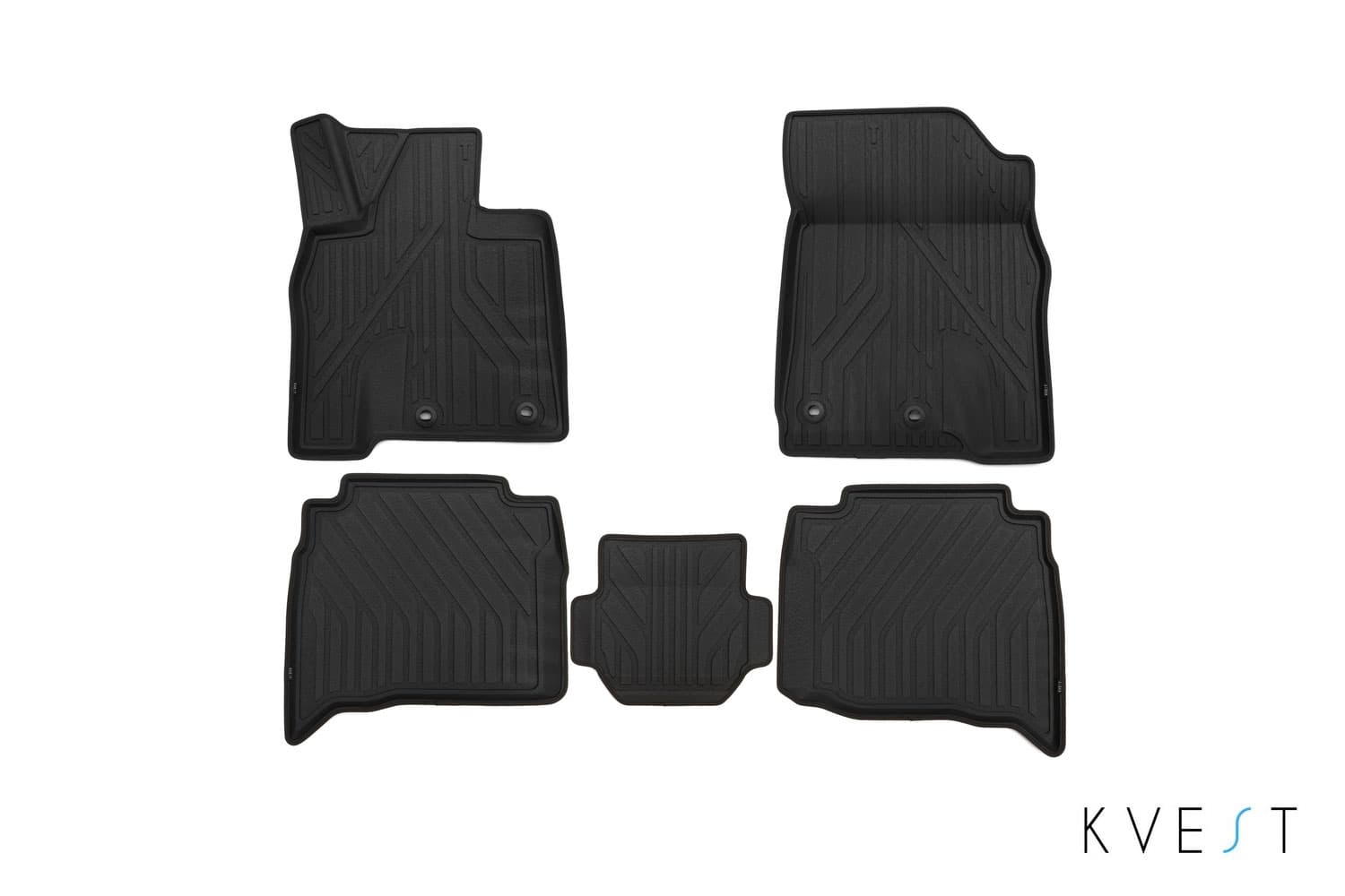 При производстве автомобильных ковриков KVEST использован инновационный материал Polystar, с ярко выраженной шероховатой поверхностью, которая обеспечивает противоскользящий эффект. Технологичный дизайн рисунка и нубуковая окантовочная лента придают завершенность и подчеркивают исключительность продукта. Каждый набор упакован в коробку с инструкцией по установке фиксаторов и брошюрой, содержащей описание всех достоинств ковров Kvest.