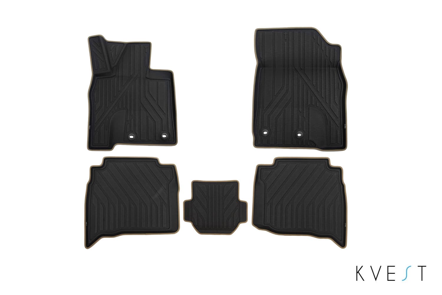 При производстве автомобильных ковриков KVEST использован инновационный материал Polystar, с ярко выраженной шероховатой поверхностью, которая обеспечивает противоскользящий эффект. Технологичный дизайн рисунка и нубуковая окантовочная лента придают завершенность и подчеркивают исключительность продукта. Каждый набор упакован в коробку с инструкцией по установке фиксаторов и брошюрой, содержащей описание всех достоинств ковров Kvest.