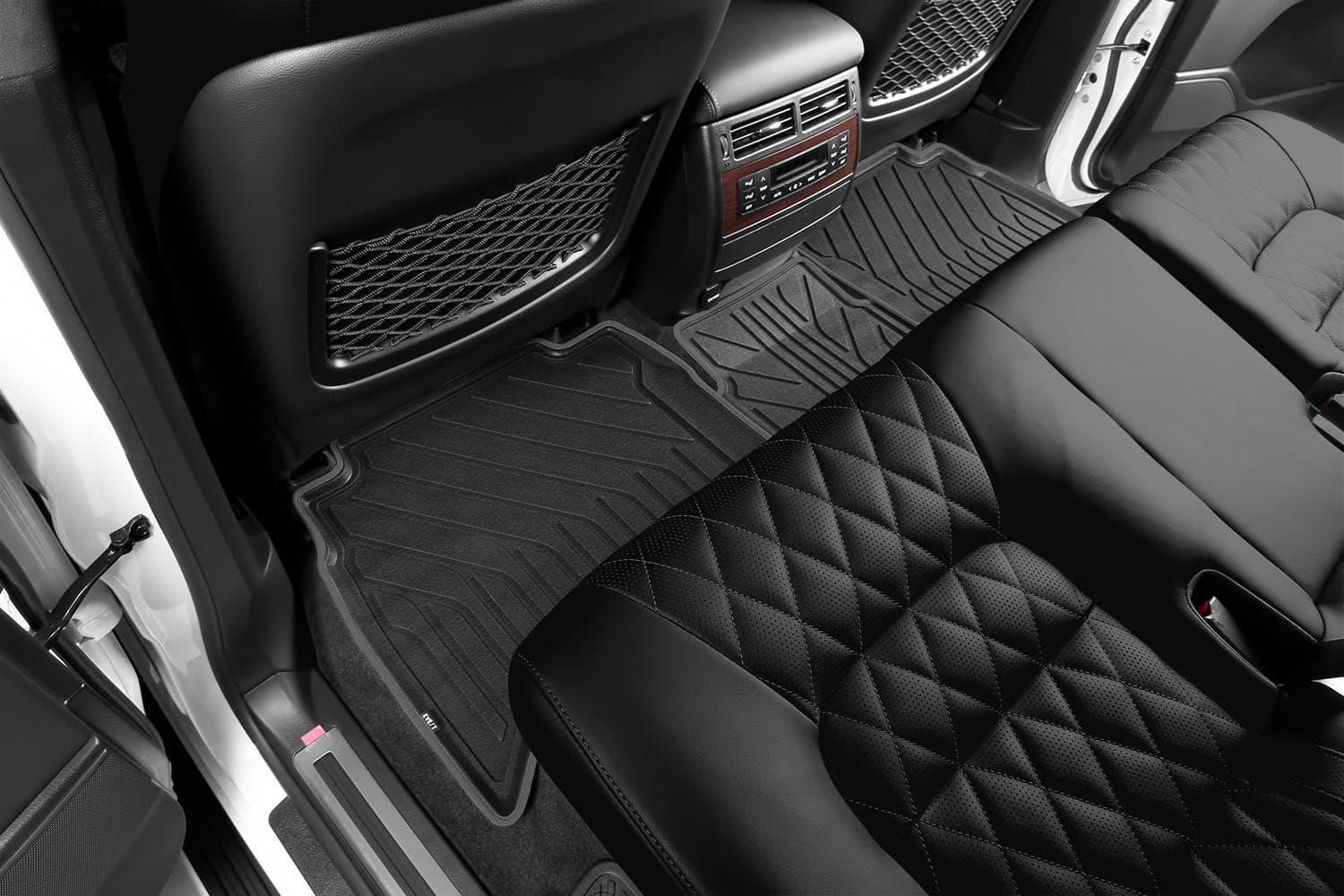 Функциональность: идеально повторяет геометрию пола автомобиля; площадка отдыха левой ноги водителя полностью закрыта; высокий борт сберегает пол и другие элементы салона; высокий профиль объемной текстуры ковриков защищает обувь от грязи, воды и соляной смеси.