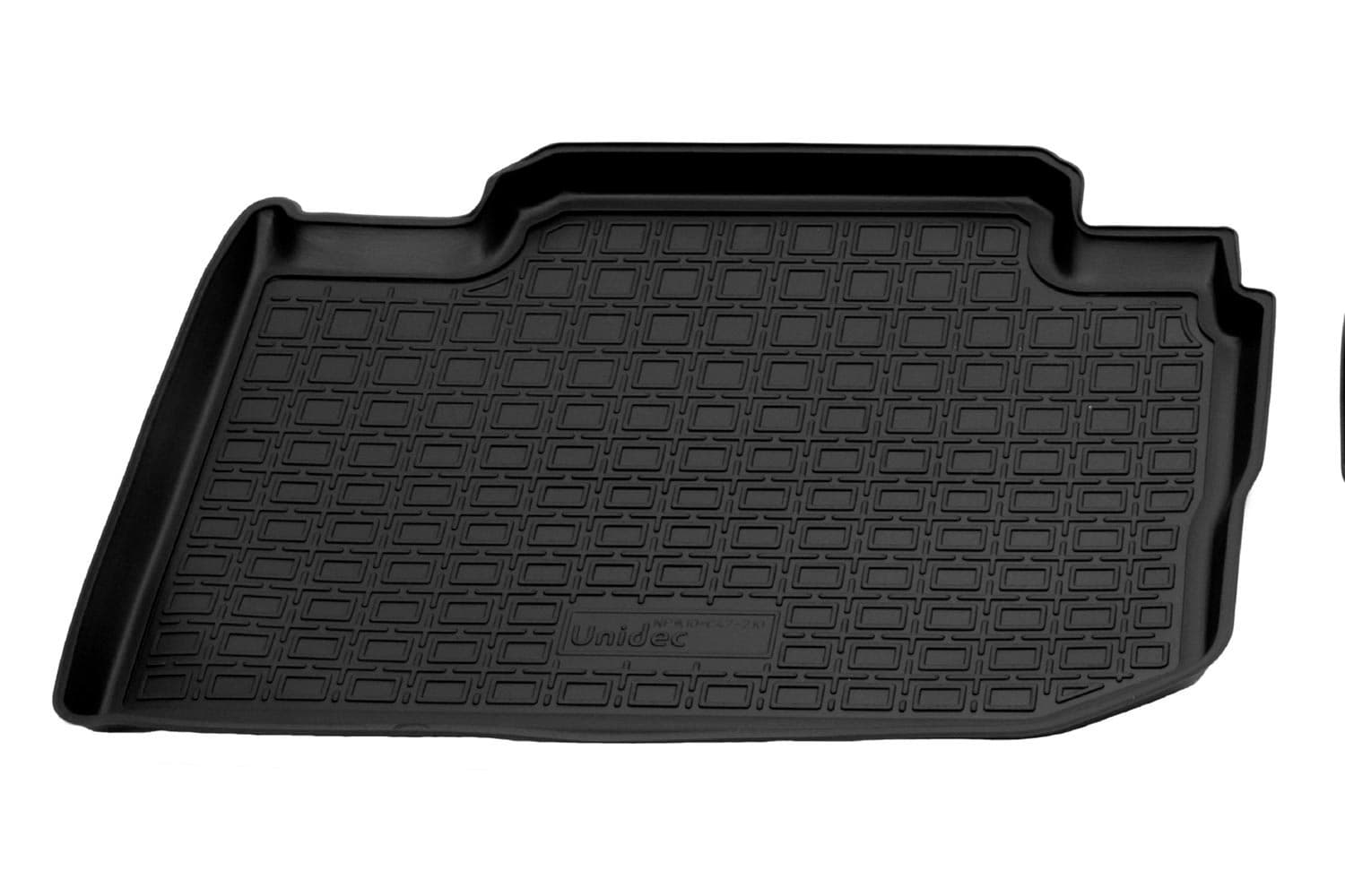 Разрабатываются точно под контуры конкретного автомобиля, что обеспечивает 100% идеальную применяемость. Они идеально прилегают к полу автомобиля в отведенном им месте.