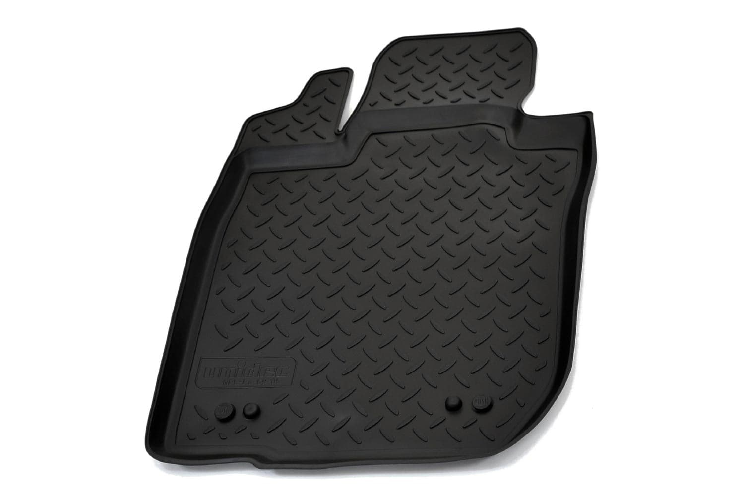 Имеют не скользящую поверхность и обеспечивают безопасное управление автомобилем, а также контролем ситуации на дороге. Изготавливаются из полиуретана, который по всем своим характеристикам превосходит резину. Во-первых, он обладает гораздо большим диапазоном твердости. Во-вторых, меньше подвержен стиранию и эластичен. В-третьих, он менее подвержен разрыву и деформациям. Коврик стоек к маслу, бензину и кислотам.