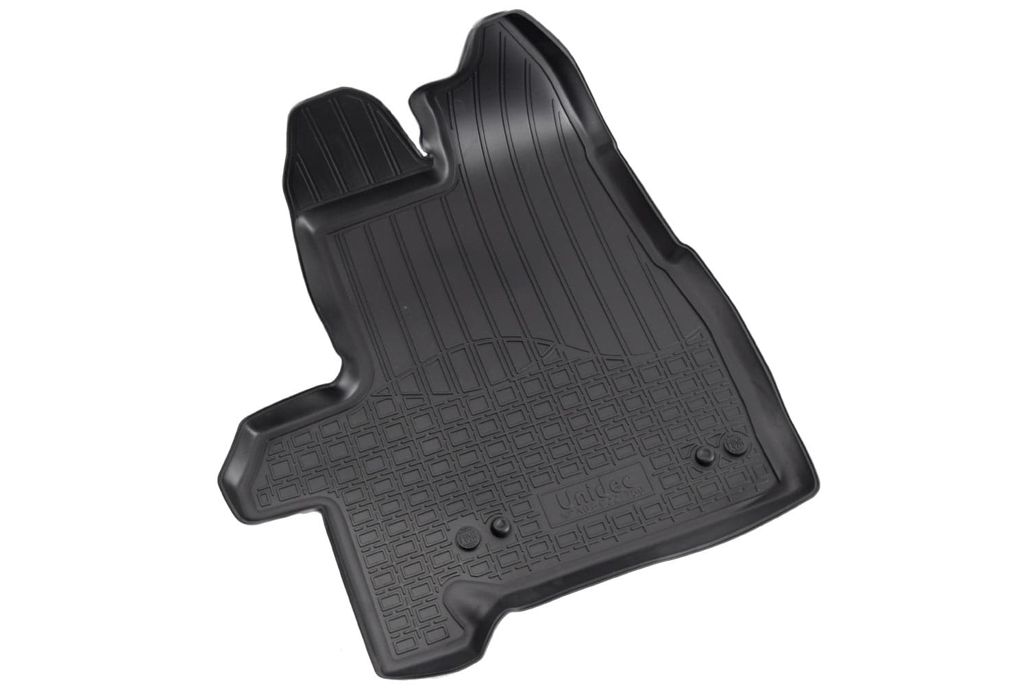Имеют не скользящую поверхность и обеспечивают безопасное управление автомобилем, а также контролем ситуации на дороге. Изготавливаются из полиуретана, который по всем своим характеристикам превосходит резину. Во-первых, он обладает гораздо большим диапазоном твердости. Во-вторых, меньше подвержен стиранию и эластичен. В-третьих, он менее подвержен разрыву и деформациям. Коврик стоек к маслу, бензину и кислотам.