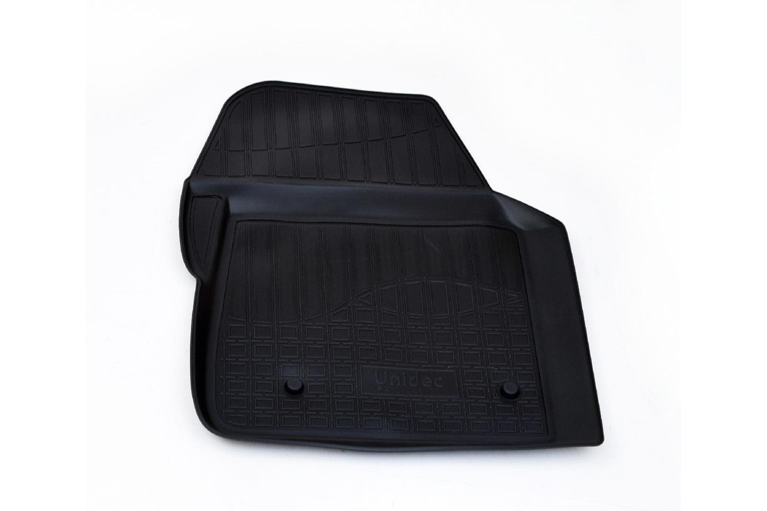Имеют не скользящую поверхность и обеспечивают безопасное управление автомобилем, а также контролем ситуации на дороге. Изготавливаются из полиуретана, который по всем своим характеристикам превосходит резину. Во-первых, он обладает гораздо большим диапазоном твердости. Во-вторых, меньше подвержен стиранию и эластичен. В-третьих, он менее подвержен разрыву и деформациям. Коврик стоек к маслу, бензину и кислотам.
