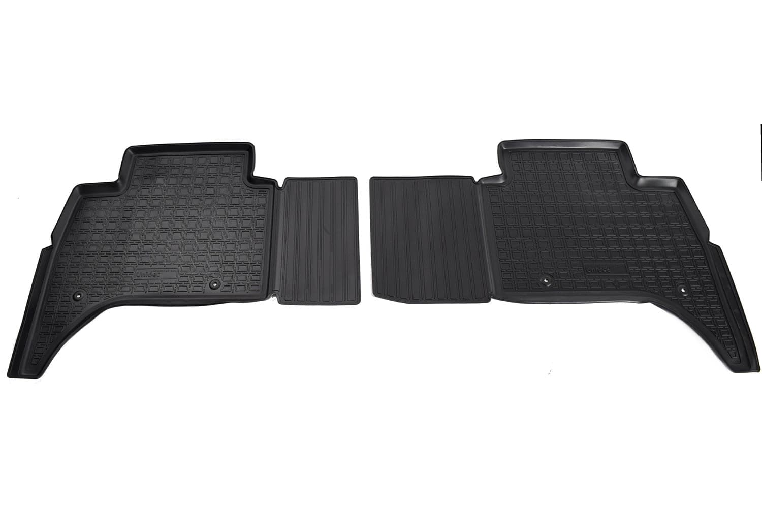 Разрабатываются точно под контуры конкретного автомобиля, что обеспечивает 100% идеальную применяемость. Они идеально прилегают к полу автомобиля в отведенном им месте.