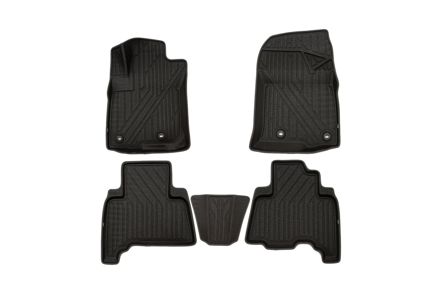 Функциональность: идеально повторяет геометрию пола автомобиля; площадка отдыха левой ноги водителя полностью закрыта; высокий борт сберегает пол и другие элементы салона; высокий профиль объемной текстуры ковриков защищает обувь от грязи, воды и соляной смеси.