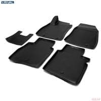 Коврики салона с бортиками, артикул 14110001 от российского бренда Риваль, изготовлены индивидуально для автомобиля Nissan Tiida 2015-2018. Черный цвет идеально впишется в темный салон автомобиля