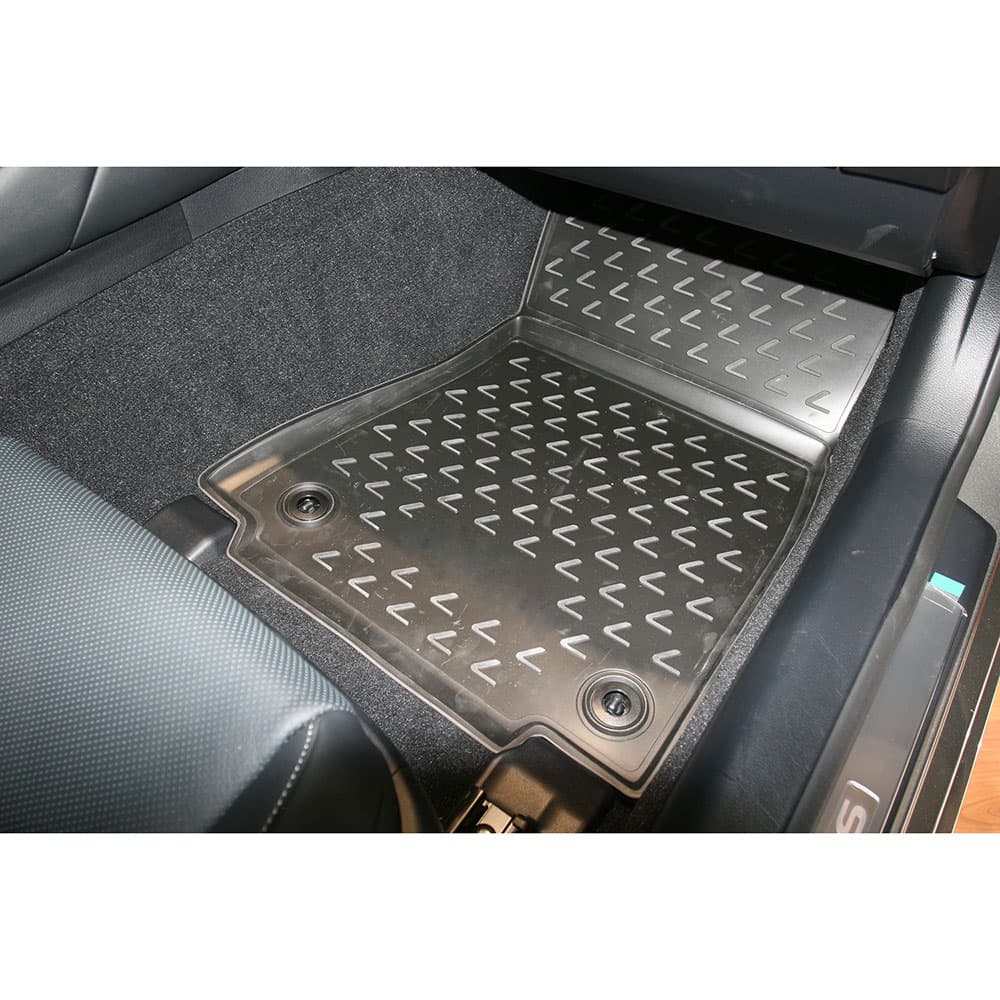 Эксплуатация. Полиуретановые коврики в два с половиной раза легче резиновых, сохраняют форму, легко вынимаются и укладываются на место. Легко моются, устойчивые к износу, идеально вписываются в интерьер. За счет свойств материала и профиля текстуры коврики не скользят. Форма передней части водительского ковра, уходящая под педаль акселератора, исключает нештатное зацепление педали за ковер. Коврики могут эксплуатироваться в самых суровых климатических условиях, сохраняя при этом физико-механические свойства.