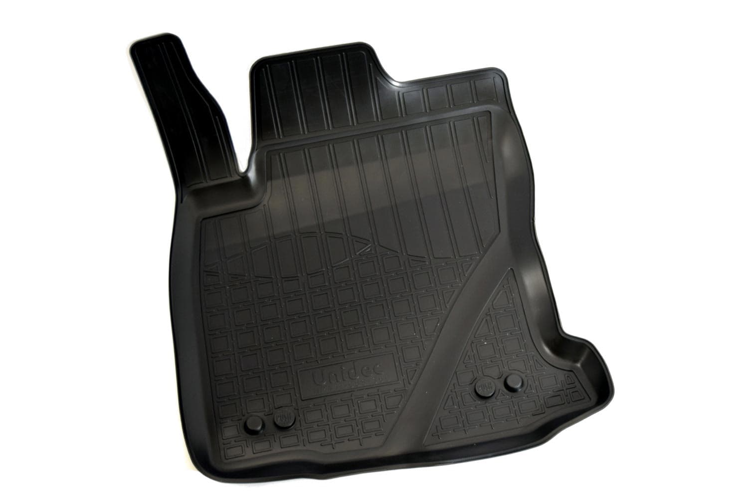 Имеют не скользящую поверхность и обеспечивают безопасное управление автомобилем, а также контролем ситуации на дороге. Изготавливаются из полиуретана, который по всем своим характеристикам превосходит резину. Во-первых, он обладает гораздо большим диапазоном твердости. Во-вторых, меньше подвержен стиранию и эластичен. В-третьих, он менее подвержен разрыву и деформациям. Коврик стоек к маслу, бензину и кислотам.