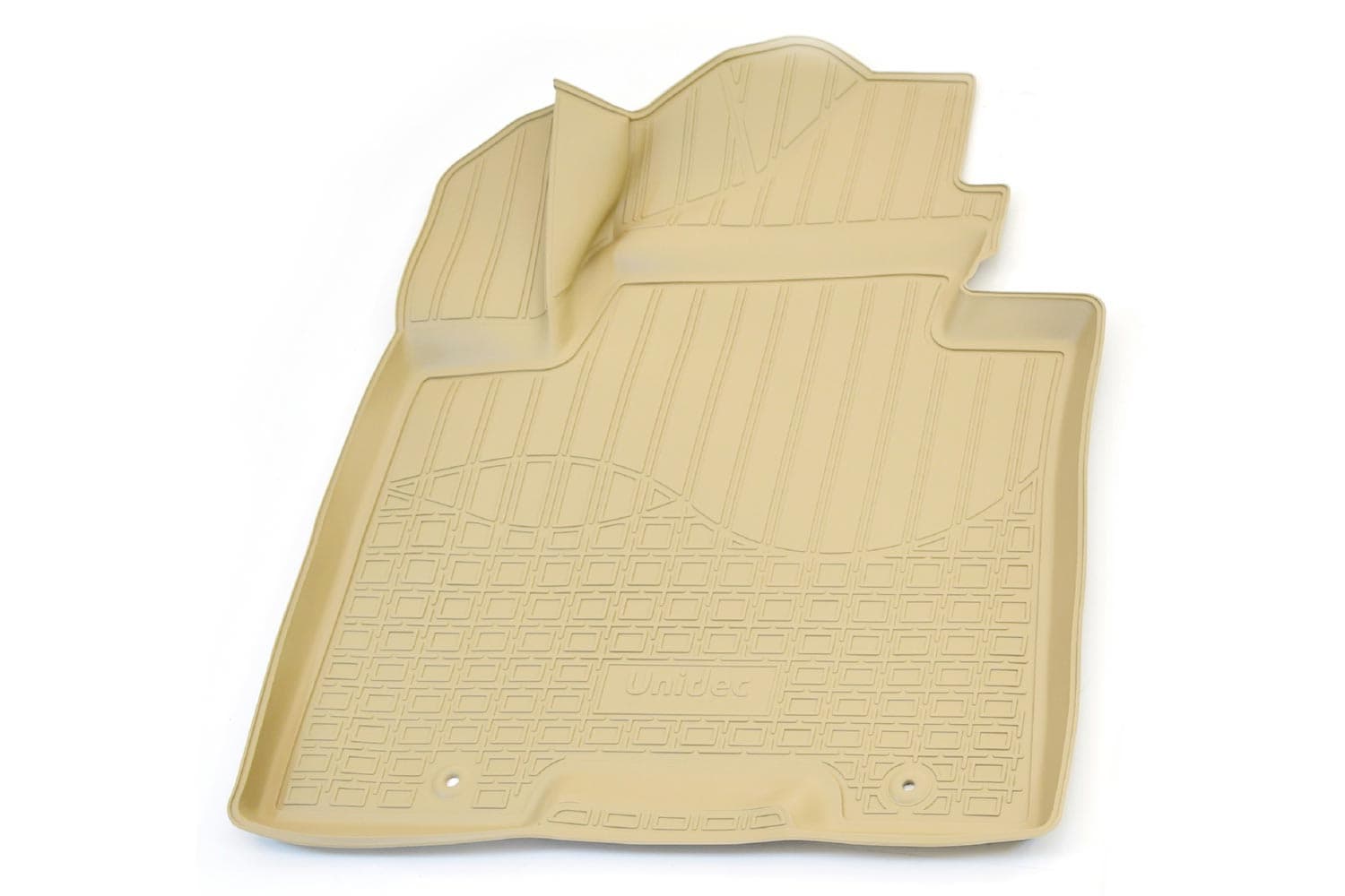 Имеют не скользящую поверхность и обеспечивают безопасное управление автомобилем, а также контролем ситуации на дороге. Изготавливаются из полиуретана, который по всем своим характеристикам превосходит резину. Во-первых, он обладает гораздо большим диапазоном твердости. Во-вторых, меньше подвержен стиранию и эластичен. В-третьих, он менее подвержен разрыву и деформациям. Коврик стоек к маслу, бензину и кислотам.