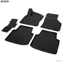 Коврики салона с бортиками, артикул 15104002 от российского бренда Риваль, изготовлены индивидуально для автомобиля Skoda Superb 2015-2020. Черный цвет идеально впишется в темный салон автомобиля