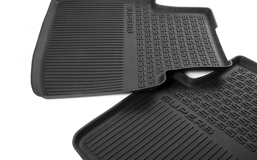 Два задних коврика, которые изготовлены из качественного материала созданы специально для модели ŠKODA Superb. Они пригодятся особенно в зимний сезон, когда салон автомобиля страдает больше всего. Благодаря их точной формы, они полностью заполняют пространство под ногами. На коврах имеется оригинальная надпись модели вашего автомобиля. Основным преимуществом таких ковриков является их приподнятые края, которые предотвращают попадание грязи и могут быть легко убраны из автомобиля.