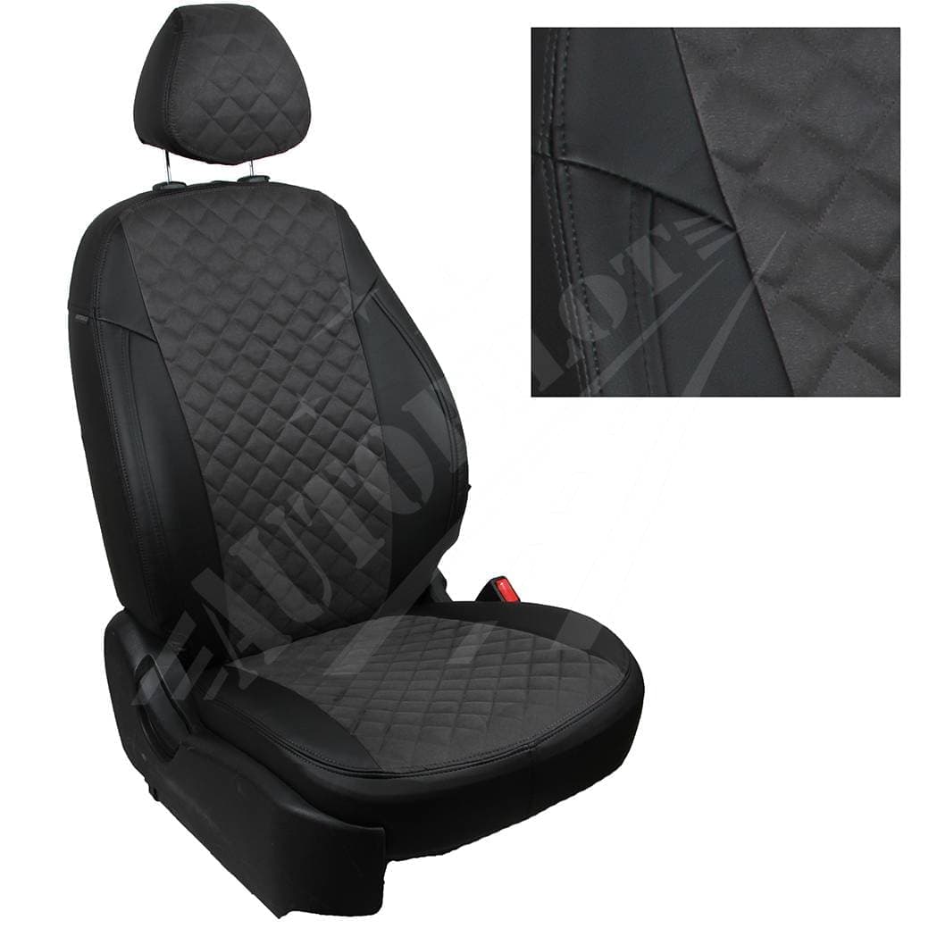 - Тыльные и боковые части чехлов сделаны из гладкой экокожи, а центральная часть из перфорированной экокожи, алькантары или велюра.