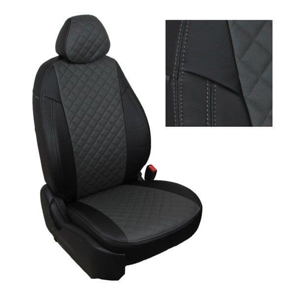 - Тыльные и боковые части чехлов сделаны из гладкой экокожи, а центральная часть из перфорированной экокожи, алькантары или велюра.