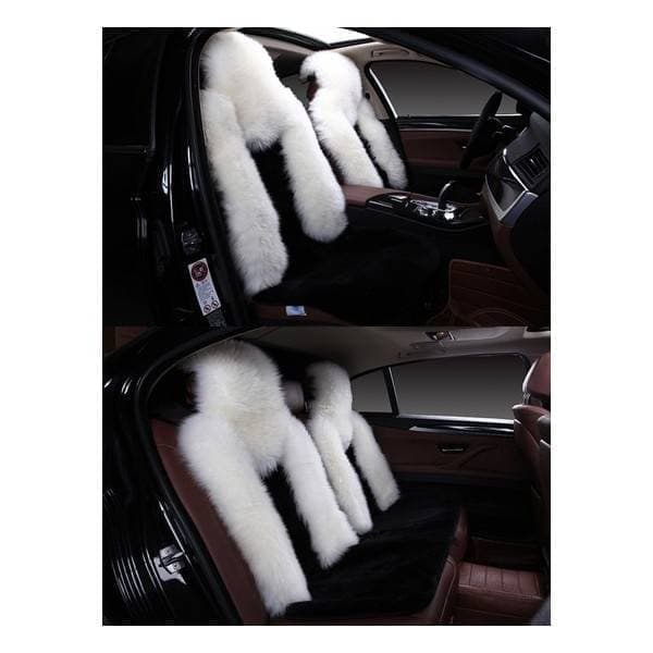 Материал: натуральный мех; цвет: белый+черный; особенности салона: заднее сиденье и спинка сплошные