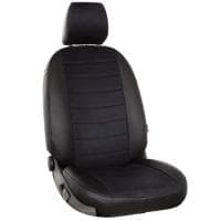 - Тыльные и боковые части чехлов сделаны из гладкой экокожи, а центральная часть из перфорированной экокожи, алькантары или велюра.