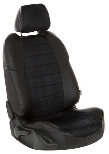 Тыльные и боковые части чехлов сделаны из гладкой экокожи, а центральная часть из перфорированной экокожи, алькантары или велюра.