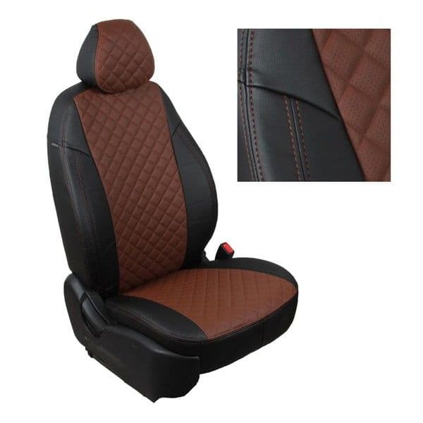 - Тыльные и боковые части чехлов сделаны из гладкой экокожи, а центральная часть из перфорированной экокожи, алькантары или велюра.