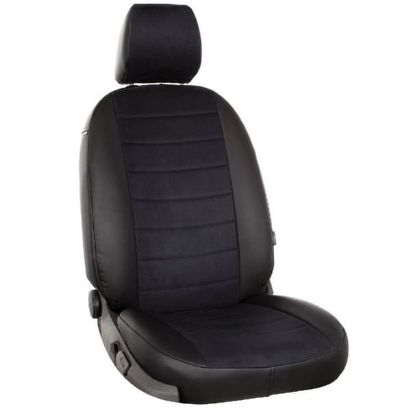 - Тыльные и боковые части чехлов сделаны из гладкой экокожи, а центральная часть из перфорированной экокожи, алькантары или велюра.