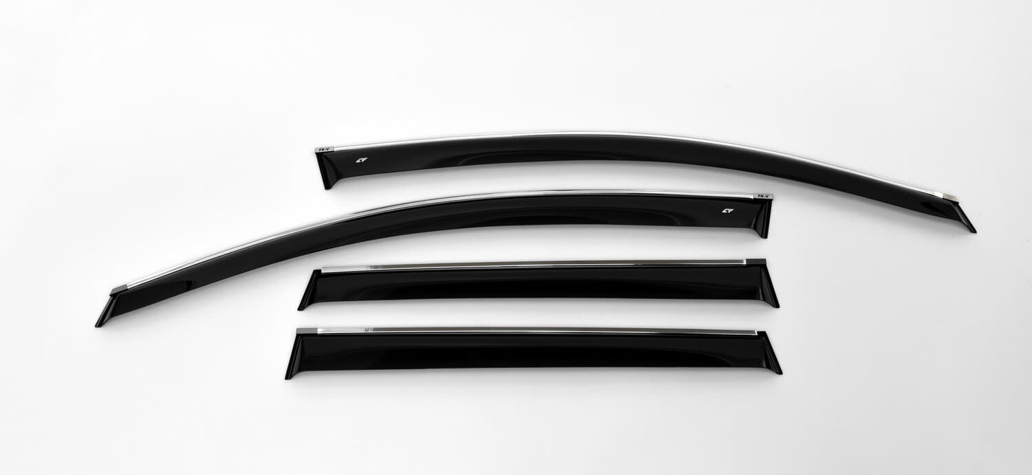 Ветровики из высококачественного стекла имеют малый вес. Они устойчивы к УФ излучению и перепадам температур. Двухсторонний ЗМ скотч производится в Германии. Он обеспечивает быстрое и прочное скрепление деталей при монтаже. Не повреждает кузов.