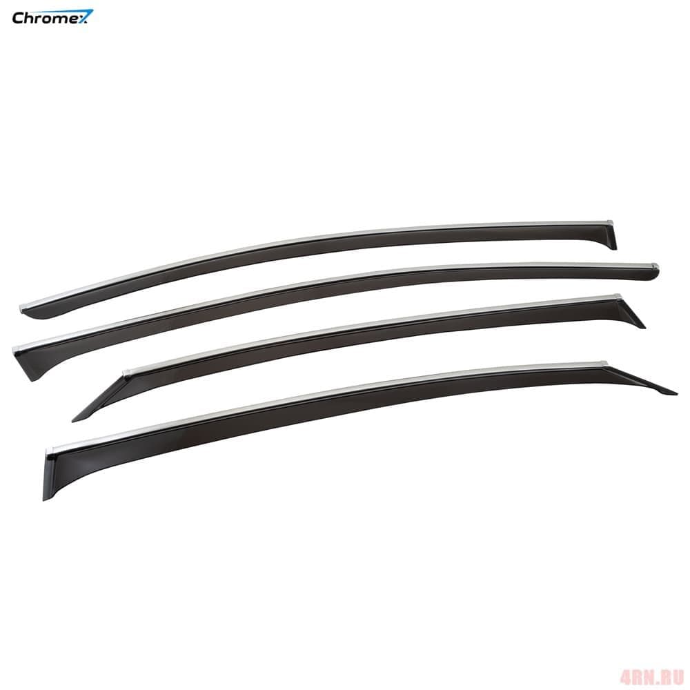 Дефлекторы окон с хромированным молдингом Chromex идеально сочетаются со штатным молдингом на кузове автомобиля, а также защищают салон от грязи, пыли, дождя, снега и обеспечивают комфортные условия при проветривании салона.