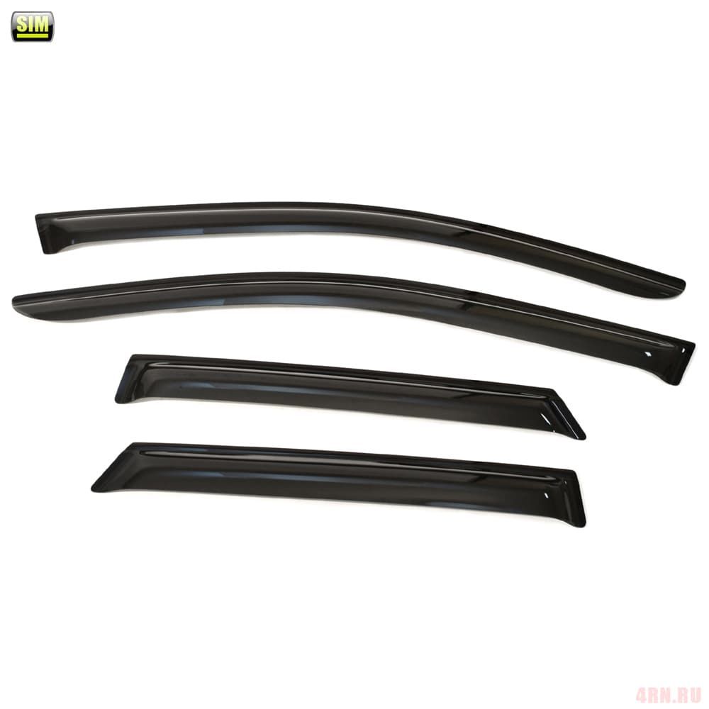 Широкие и узкие изделия, нескольких расцветок, аэродинамичного дизайна - крепятся на клипсы в штатные места. Установка дефлектора не требует сверления кузова и может производиться самостоятельно без обращения в автосервис. Имеют темный оттенок, с тонировкой до 21%. При установке визуально кажутся черными.