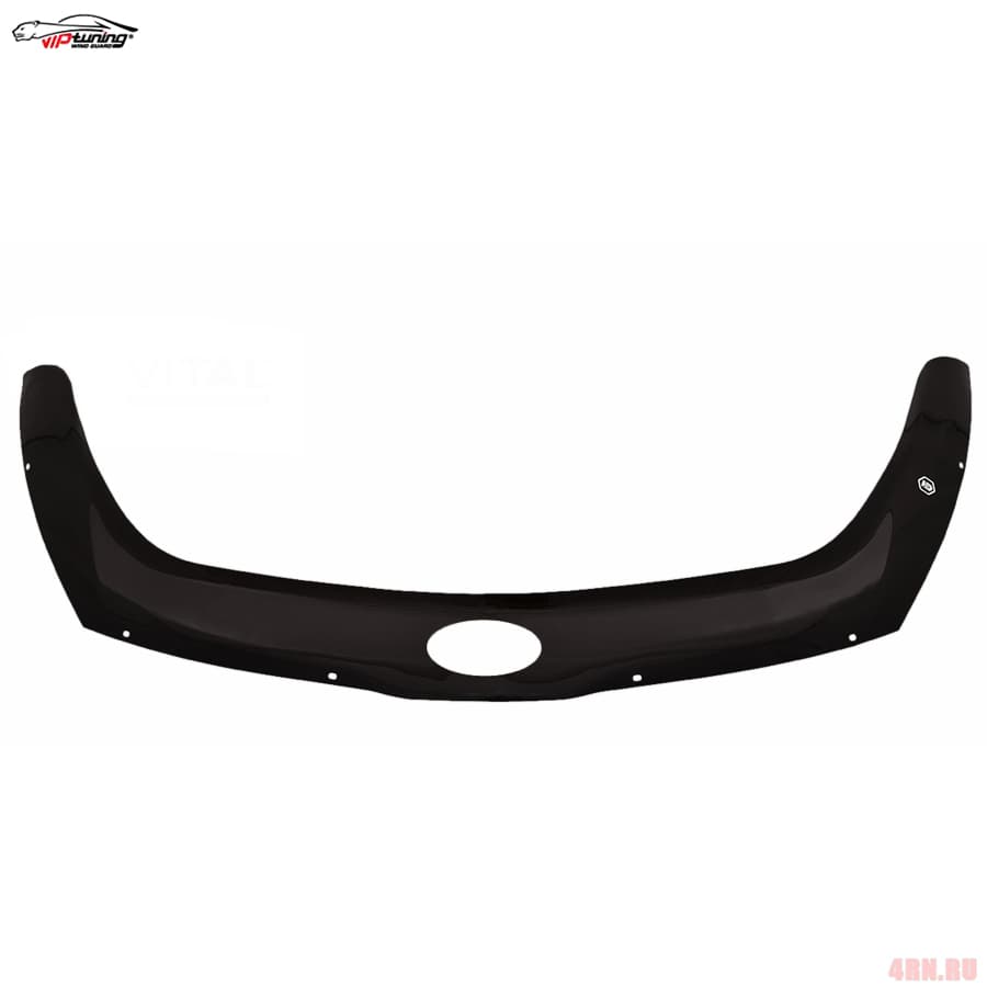 Дефлектор автомобиля VIP-tuning имеет аэродинамическую форму, это улучшается обтекаемость машины воздушными потоками. Монтаж происходит с помощью креплений, которые поставляются в комплекте с изделием. Конструкция устанавливается на капот с зазором в 1 см.