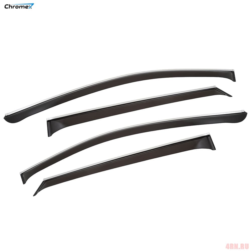 Дефлекторы окон с хромированным молдингом Chromex идеально сочетаются со штатным молдингом на кузове автомобиля, а также защищают салон от грязи, пыли, дождя, снега и обеспечивают комфортные условия при проветривании салона.