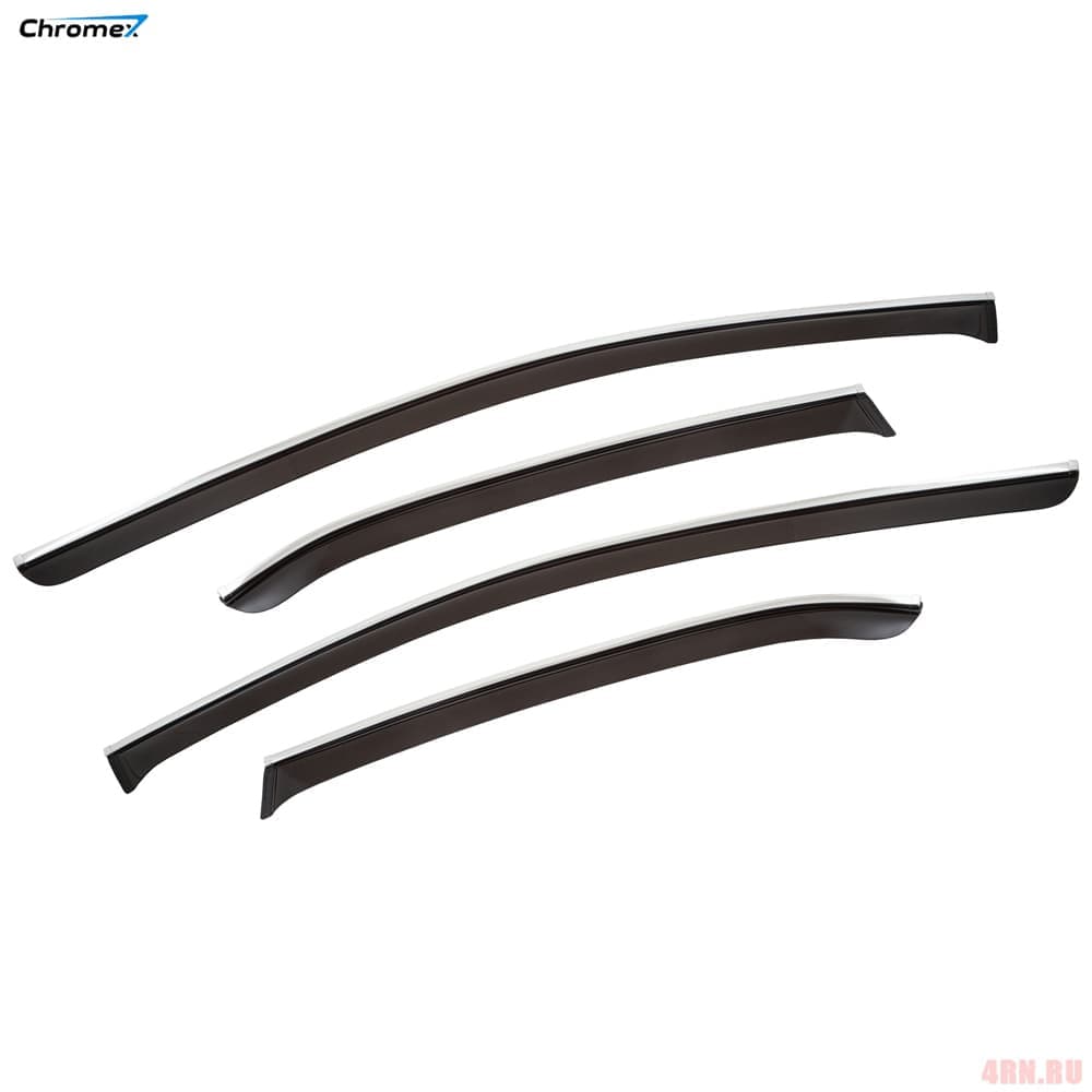 Дефлекторы окон с хромированным молдингом Chromex идеально сочетаются со штатным молдингом на кузове автомобиля, а также защищают салон от грязи, пыли, дождя, снега и обеспечивают комфортные условия при проветривании салона.