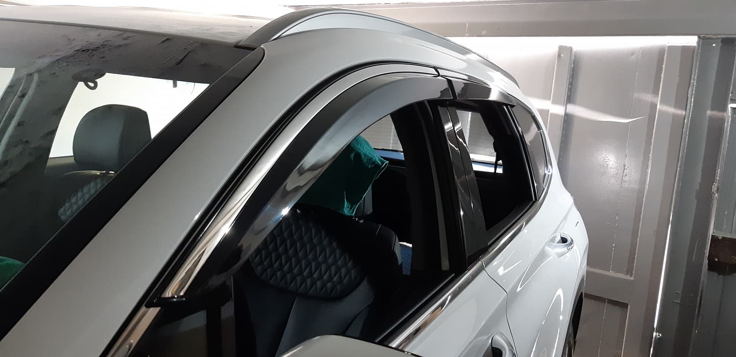 Дефлекторы боковых окон Fresh Wind для Hyundai Santa Fe (2018-2023) с нержавеющим молдингом № BHYSF1823