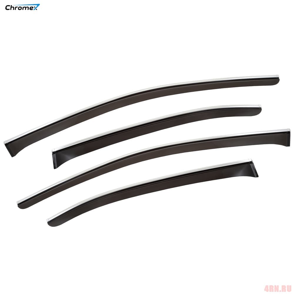 Дефлекторы окон с хромированным молдингом Chromex идеально сочетаются со штатным молдингом на кузове автомобиля, а также защищают салон от грязи, пыли, дождя, снега и обеспечивают комфортные условия при проветривании салона.