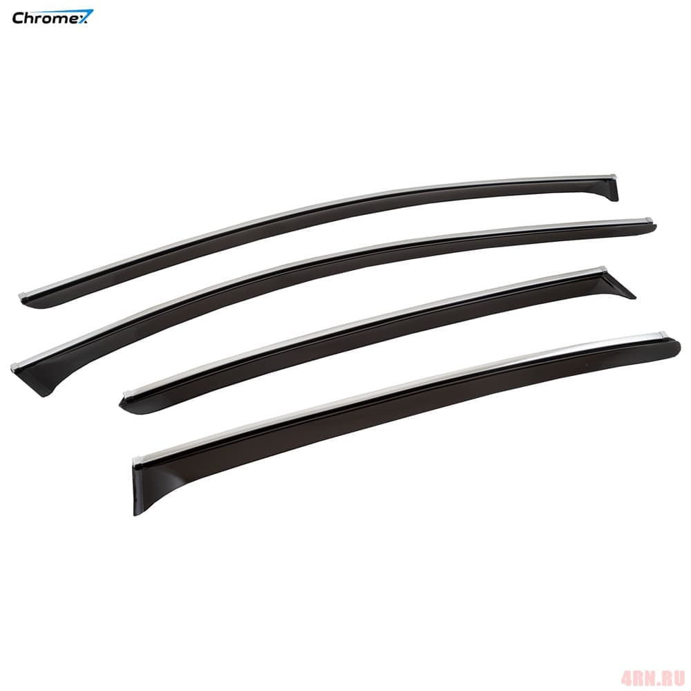 Дефлекторы окон с хромированным молдингом Chromex идеально сочетаются со штатным молдингом на кузове автомобиля, а также защищают салон от грязи, пыли, дождя, снега и обеспечивают комфортные условия при проветривании салона.