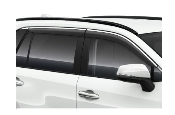 Оригинальные дефлекторы окон для Тойота РАВ4 2019-2020 года выпуска. В точности повторяя линии кузова автомобиля, дефлекторы эффективно отводят встречные воздушные потоки, что делает поездку с приоткрытыми окнами намного комфортнее и позволяет наслаждаться свежим воздухом в салоне даже в дождливую погоду.