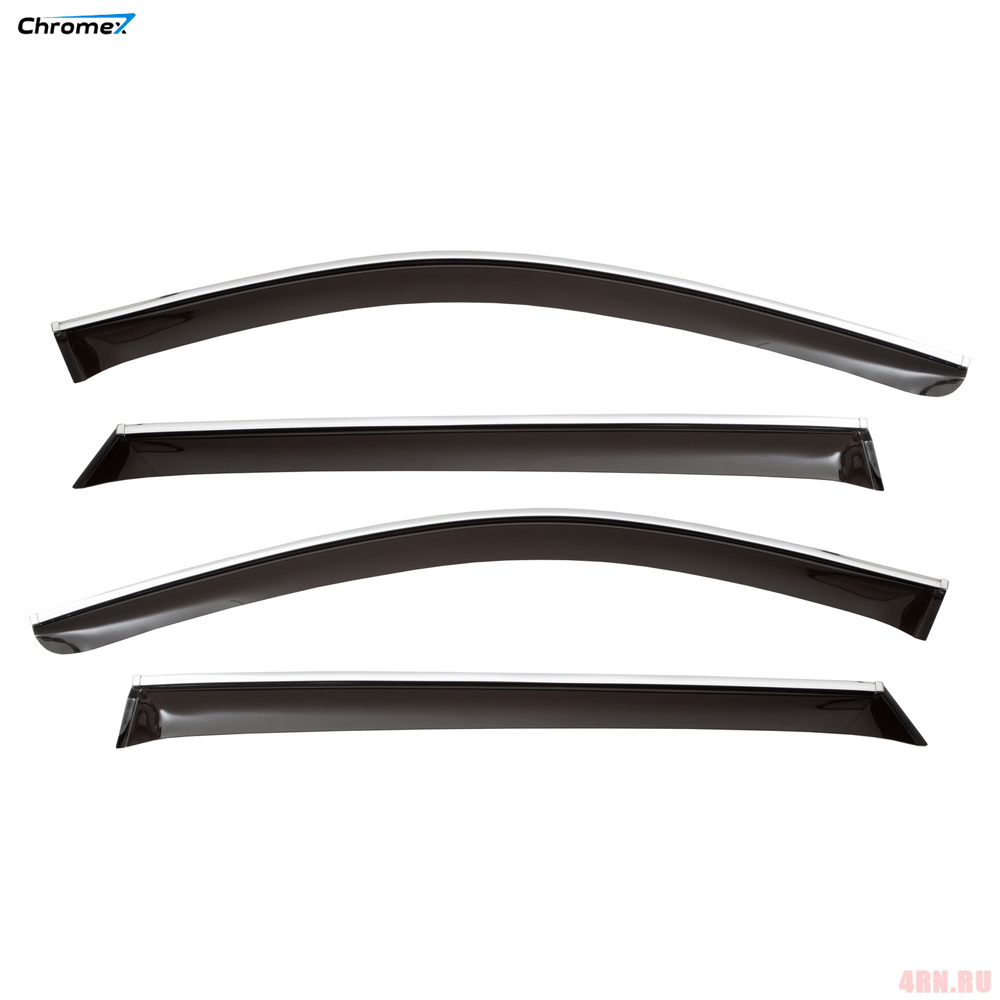 Дефлекторы окон с хромированным молдингом Chromex идеально сочетаются со штатным молдингом на кузове автомобиля, а также защищают салон от грязи, пыли, дождя, снега и обеспечивают комфортные условия при проветривании салона.