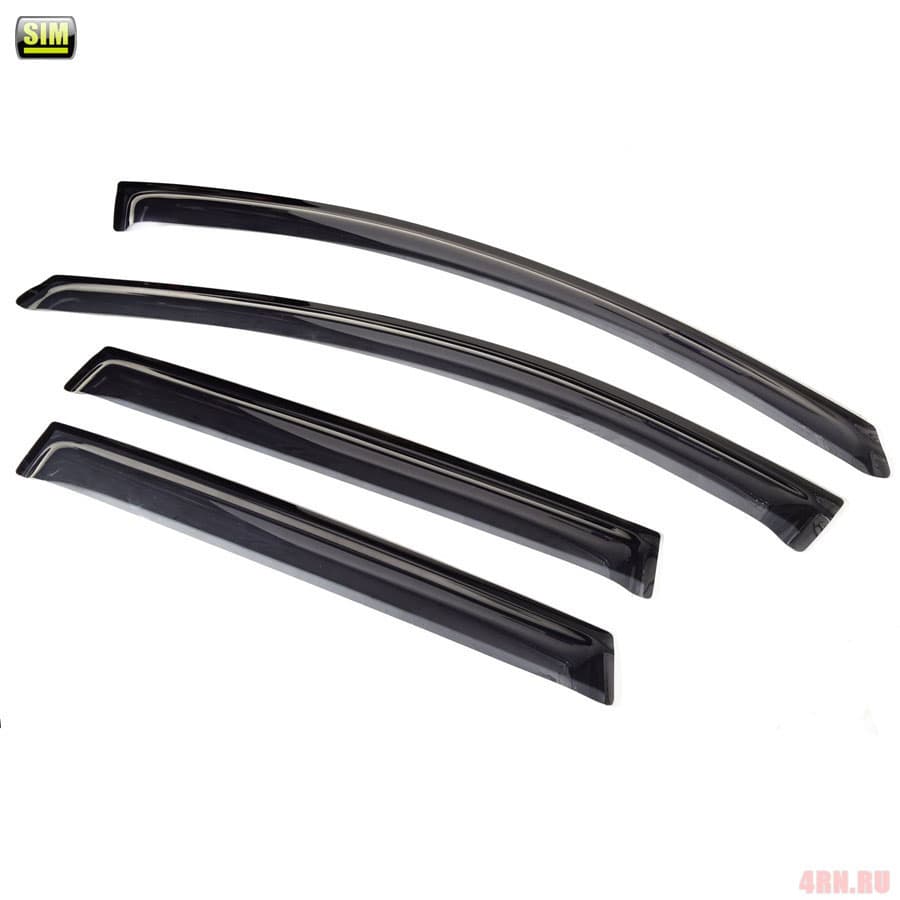 Дефлекторы стекол SIM – это высококлассный продукт, при производстве которого используются качественные и сертифицированные материалы. Они служит для отвода воздушных потоков от бокового остекления транспортно средства. Таким образом, грязь и влага не проникают в салон автомобиля при передвижении в непогоду. Безусловно, ветровики на машину SIM обладают большим количеством положительных качеств. Дефлектор боковых окон SIM способны отлично преобразить облик машины, добавить ему стильности и оригинальности.