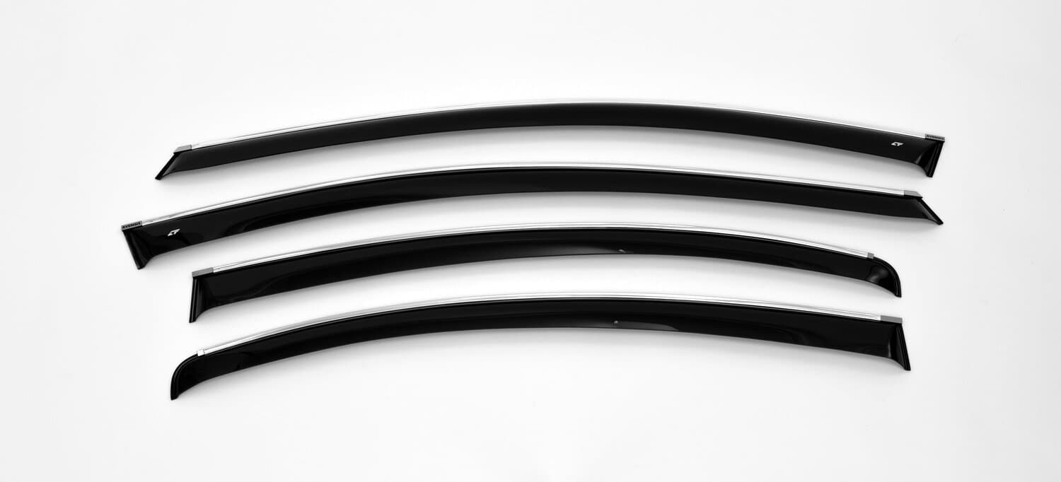 Ветровики из высококачественного стекла имеют малый вес. Они устойчивы к УФ излучению и перепадам температур. Двухсторонний ЗМ скотч производится в Германии. Он обеспечивает быстрое и прочное скрепление деталей при монтаже. Не повреждает кузов.